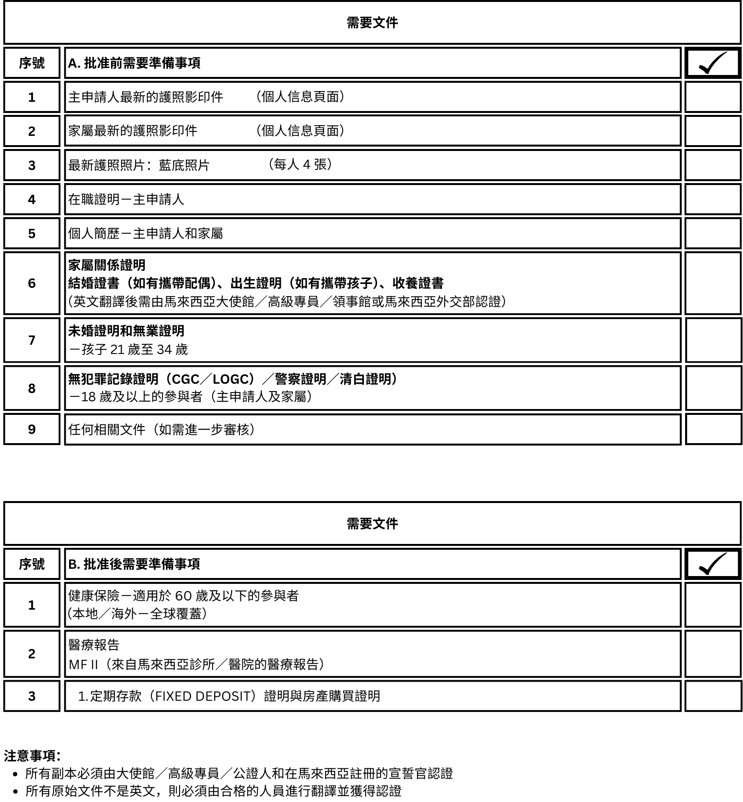 3. 如果在獲得 MM2H 簽證之後購買房產,則需在 1 年內完成購買;購買後需附上房產證明文件。