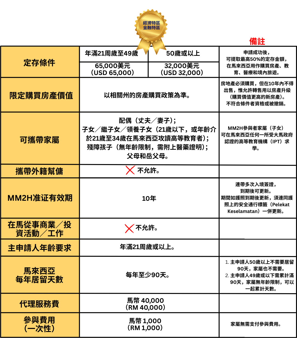 1. 主申請人50歲以上不需要居留90天,家屬也不需要。